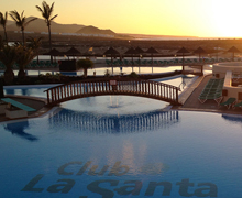 兰萨罗特岛在Fuerteventura 岛东北方11公里,跟Graciosa只相距1公里。兰萨罗特岛海岸线全长213公里,其中10公里是沙地,16.5公里是海滩,余下的则是石滩。岛屿景色宏伟,可饱览北面的Famara山脉至南方的Ajaches山脉。Famara山脉以南则是El Jable 沙漠,分隔了Famara山脉与火焰群山(Montañas del Fuego)。 全岛的最高峰是Peñas del Chache,高海拔670米。而「亚特兰蒂斯隧道」(Tunnel of Atlantis) 则是全球最大的海底火山隧道。